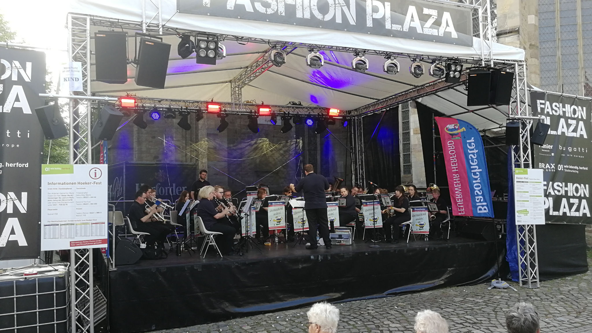 Mit einem Programm aus vielen neuen und einigen alten Stücken aus unserem Repertoire haben wir die leider um diese Zeit nicht mehr so zahlreichen Zuschauer mit viel Freude unterhalten. Für das ältere Publikum hatten wir sogar ein paar eigene Sitzgelegenheiten dabei. Der Platz ist eben mehr für jüngeres Publikum und etwas rockigere Musik ausgelegt, aber so waren alle zufrieden.