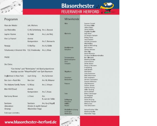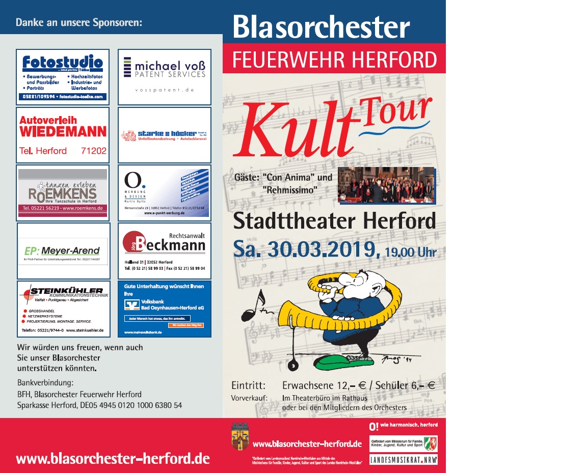 Das Blasorchester Feuerwehr Herford lädt ein zur KULT-TOUR ins Stadttheater. Da gibt es richtig was auf die Ohren.