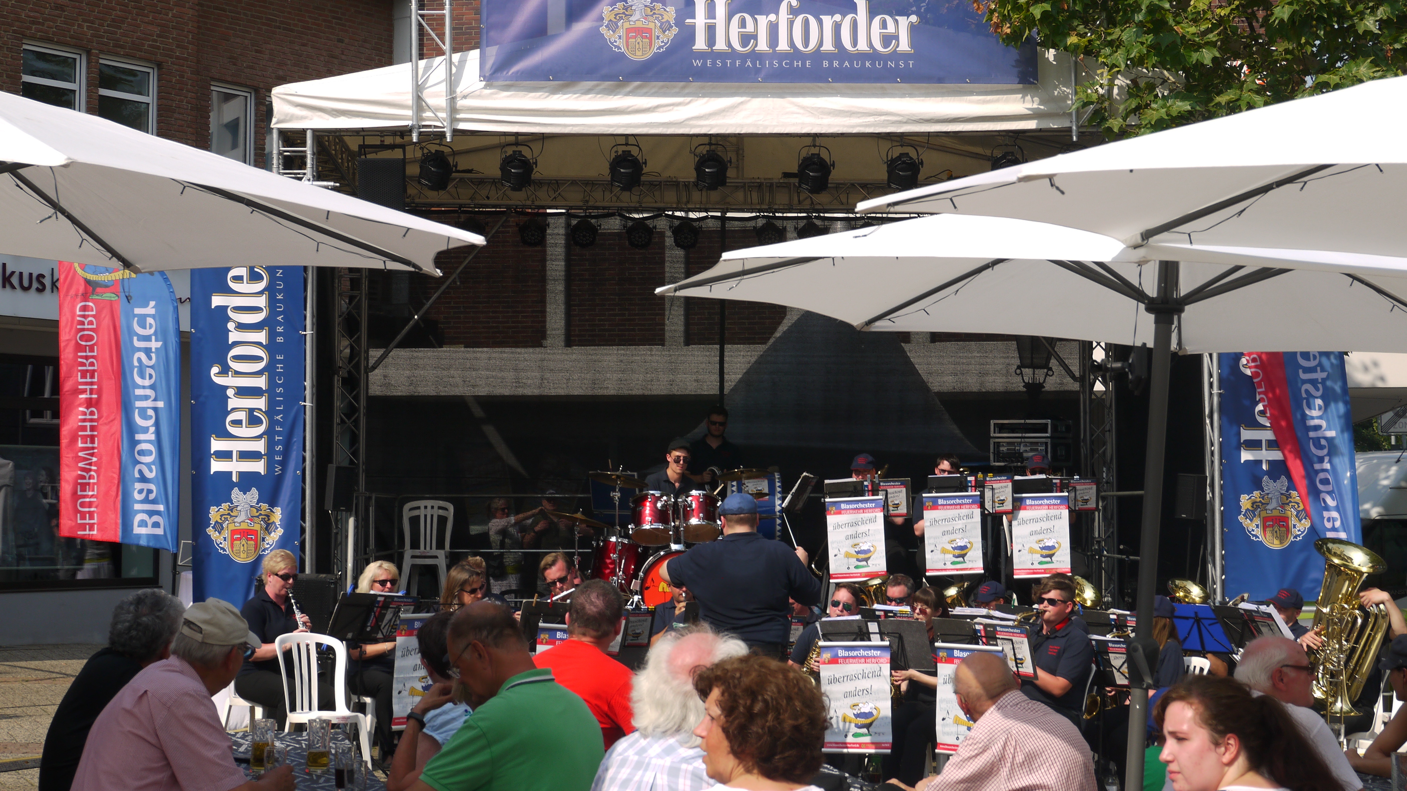 – und das BFH war nach einem Abstecher auf den Neuen Markt im letzten Jahr nun wieder auf dem Gänsemarkt zu Gast. Trotz gefühlter Backofentemperaturen auf und vor der Bühne gab es in gemütlichem Weindorf-Ambiente 2 Stunden einen bunten Mix von Pop bis Klassik zu hören.